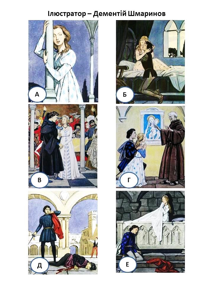 Звичайно класичні літературні твори мають різні художні інтерпретації, і ми можемо запропонувати учням зіставити їх, вибрати художника, уявлення якого про героїв найбільше відповідають їхній уяві (наприклад, трагедію «Ромео і Джульєтта» ілюстрували Д. Шмаринов, С. Бродський). Як варіант творчого опрацювання ілюстрацій може бути твір-мініатюра «Мій художник-ілюстратор книги … – це …».